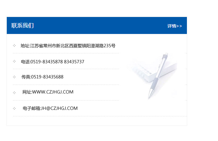 傳真:0519-83435688    郵編:213135    網址:WWW.czjhgj_com.hddemusi.com    電子郵箱:JH@czjhgj_com.hddemusi.com